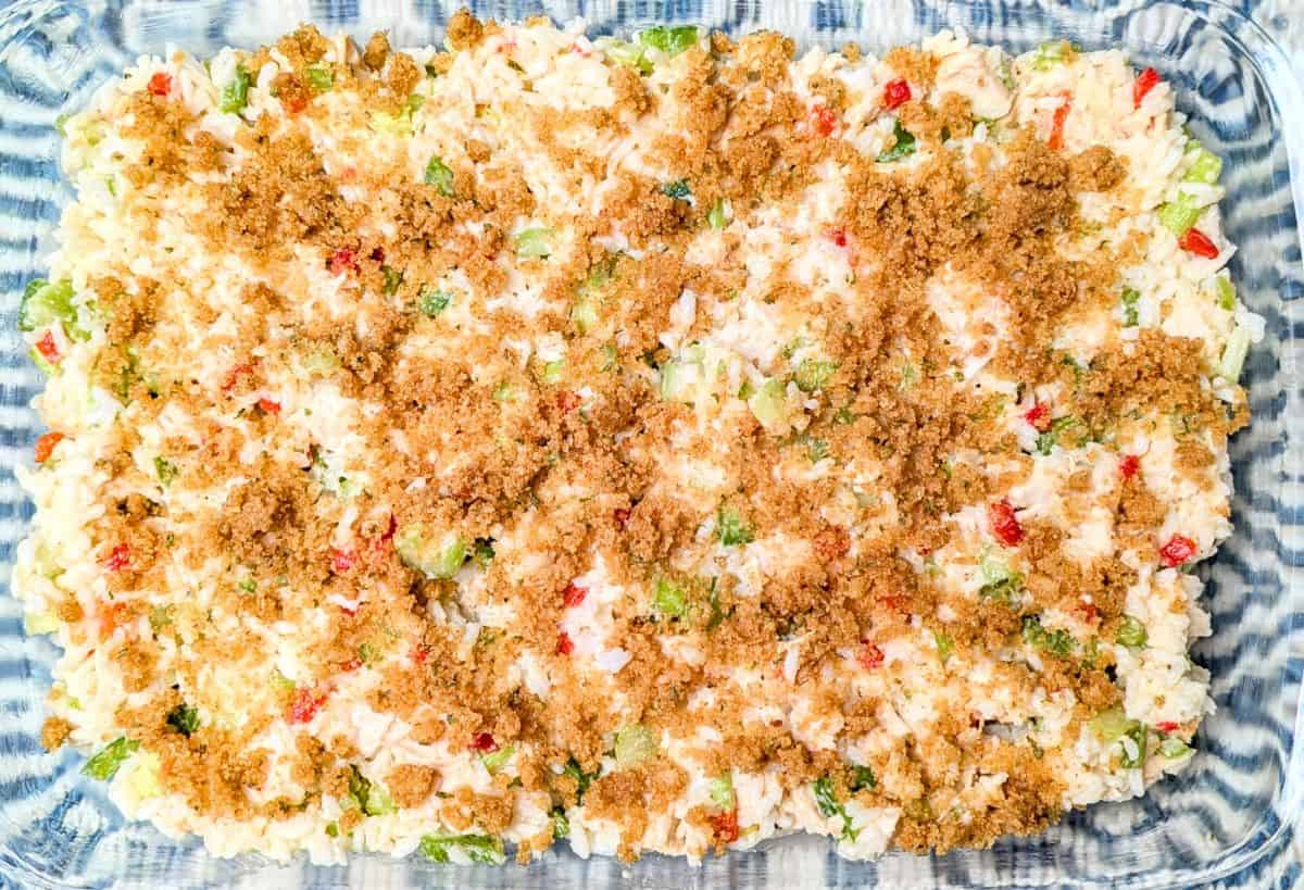 - Step 4: Mix the breadcrumbs and butter; sprinkle over the casserole and bake.