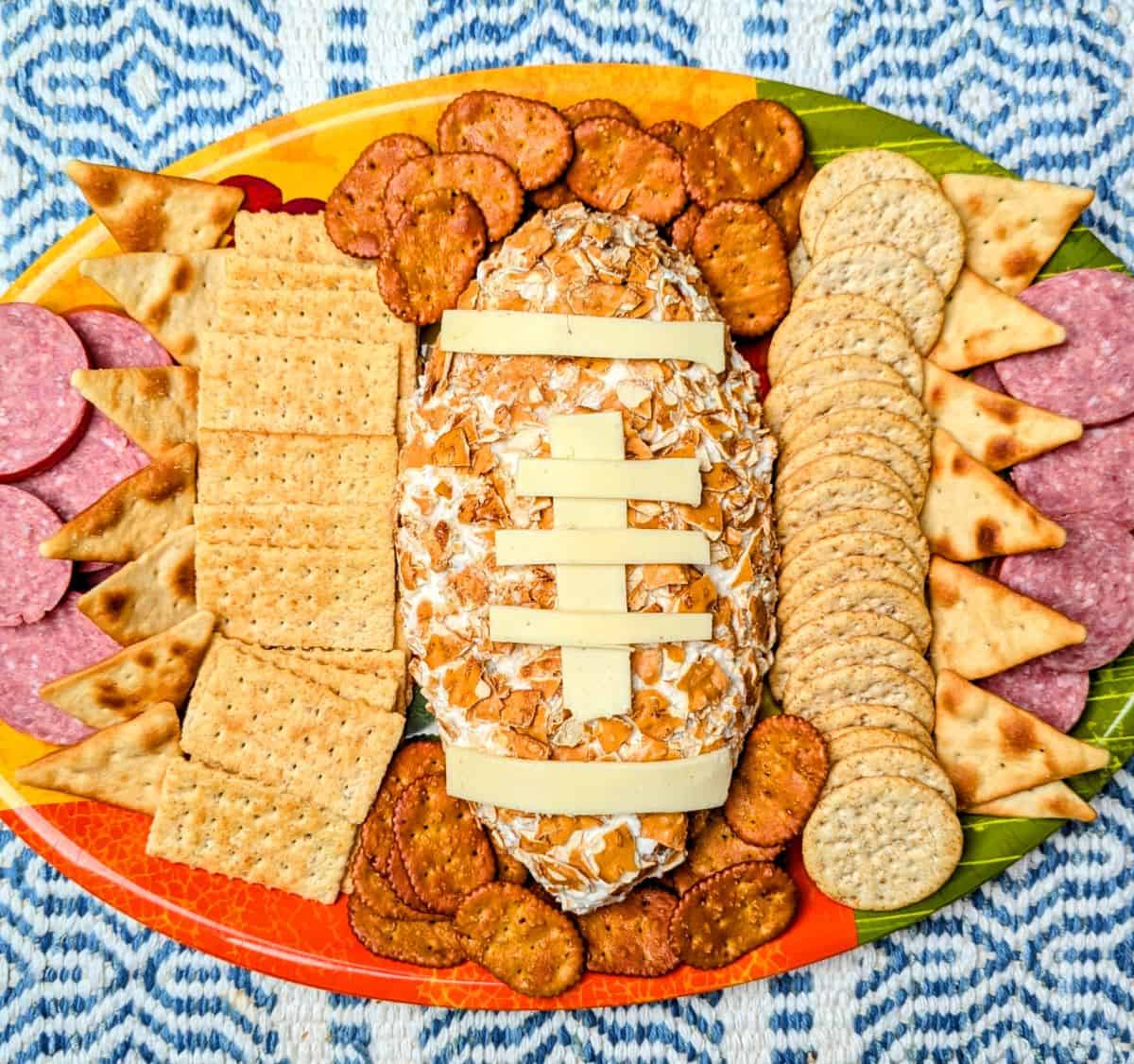 Football Cheese Ball will be the talk of your tailgate or Super Bowl watch party. It's just that good! Heck, it might even bring your team a little luck!