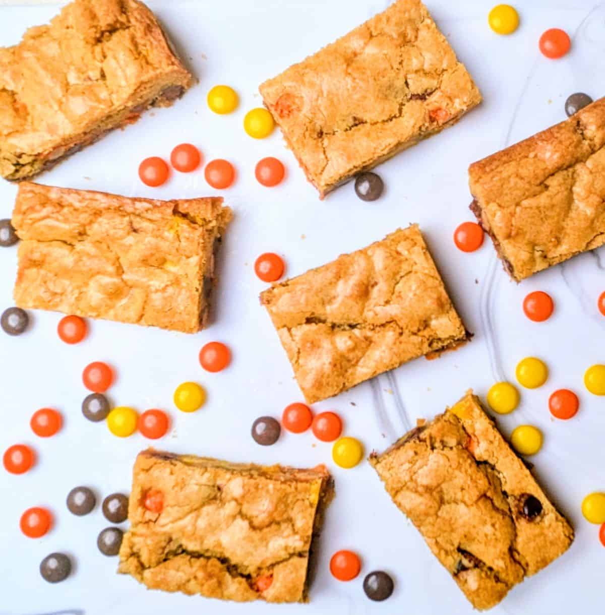 These wonderfully buttery, sinfully rich bars are a chocolate peanut butter lover's dream. With Reese's Pieces and gooey chocolate chips, each scrumptious bite is pure joy.